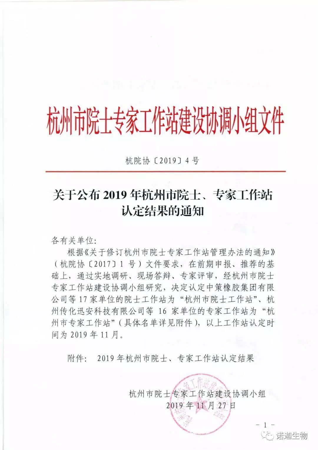 11月27日,浙江諾迦生物科技有限公司正式被認(rèn)定為“杭州市院士工作站”。