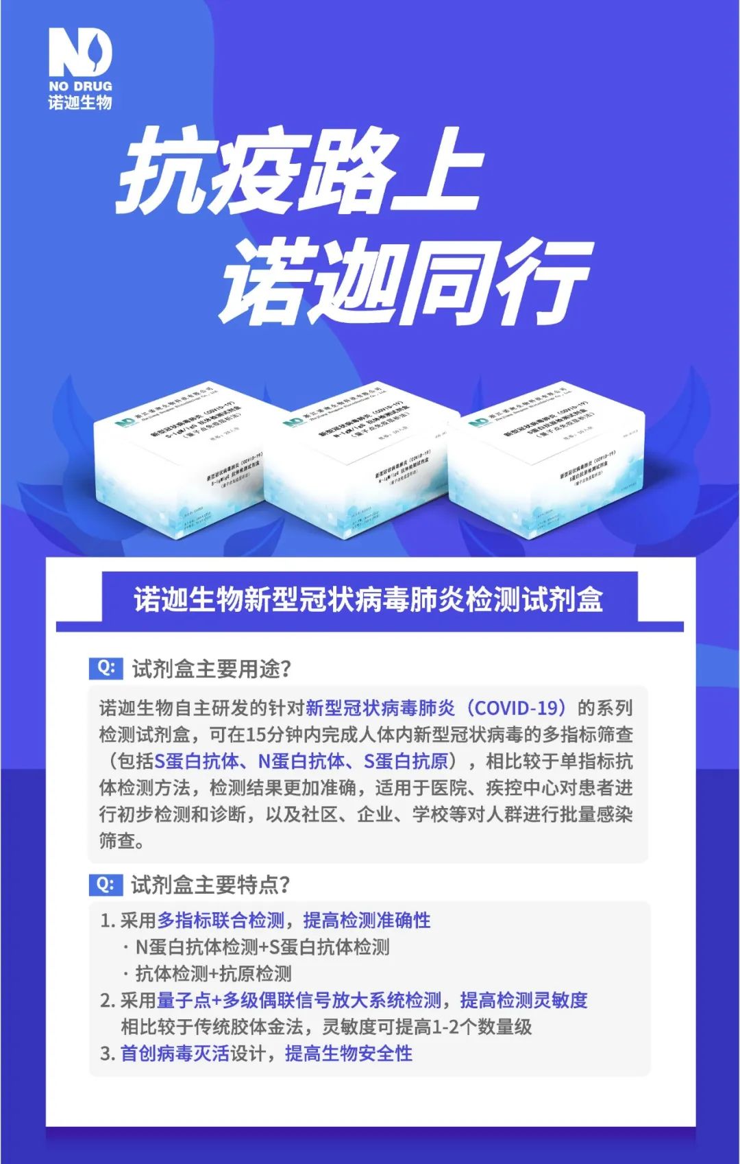 新型冠狀病毒來勢洶洶,抗擊新冠肺炎疫情的戰(zhàn)斗仍在繼續(xù)。疫情當(dāng)前,作為長期致力于體外快速診斷試劑研發(fā)和生產(chǎn)的高科技企業(yè),諾迦生物研發(fā)團(tuán)隊日夜奮戰(zhàn),通過基因設(shè)計與合成、質(zhì)粒構(gòu)建、蛋白的表達(dá)與制備、實(shí)驗(yàn)室調(diào)試、臨床檢測等多重研發(fā)實(shí)驗(yàn)環(huán)節(jié),成功研制出針對新型冠狀病毒肺炎(COVID-19)的系列檢測試劑盒,為成功打贏這場疫情攻堅戰(zhàn)貢獻(xiàn)力量。