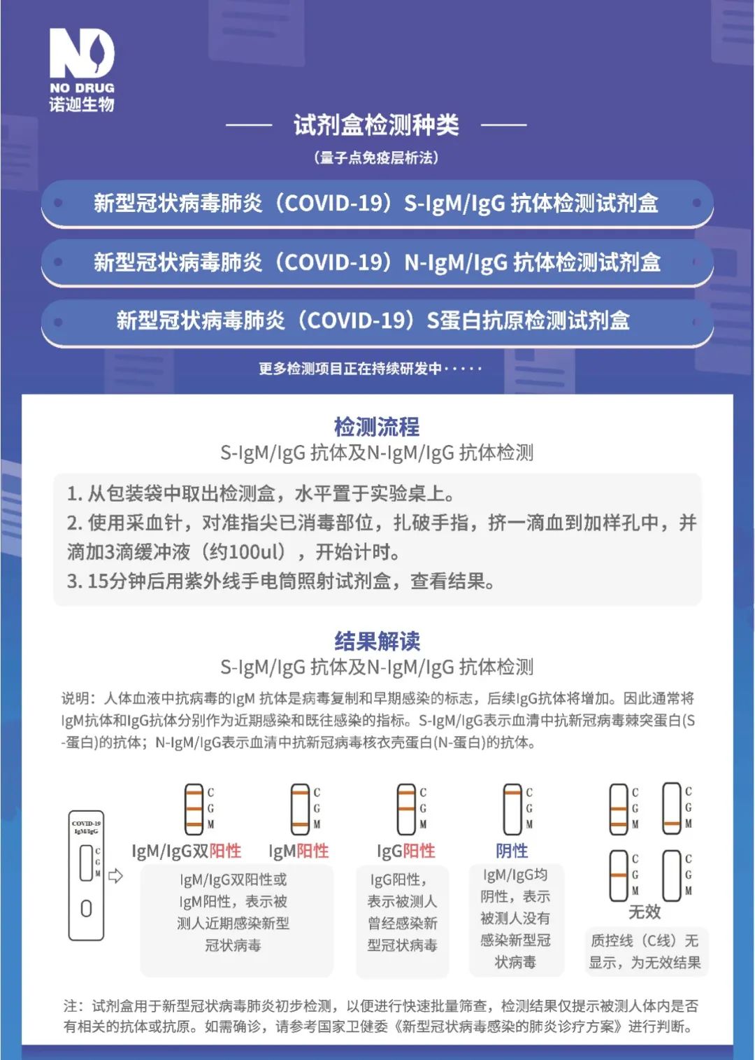 諾迦生物自成立以來,以體外診斷吸毒人群為開端,已建立了針對于特殊人群的綜合、專業(yè)的體外診斷解決方案。此次針對新型冠狀病毒肺炎(COVID-19)研發(fā)檢測試劑盒,是諾迦生物致力于服務(wù)人類健康這一重要使命的又一次實(shí)踐。